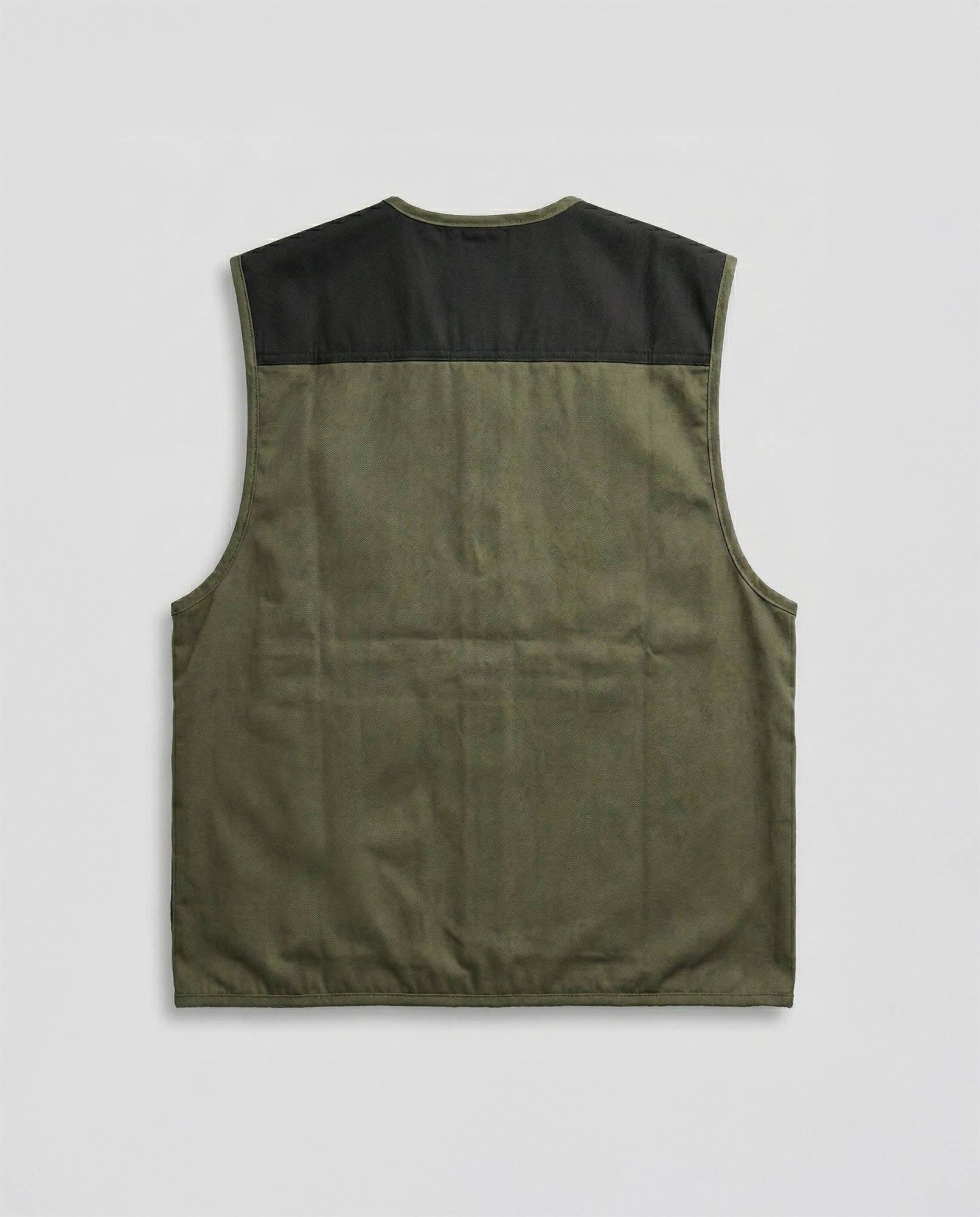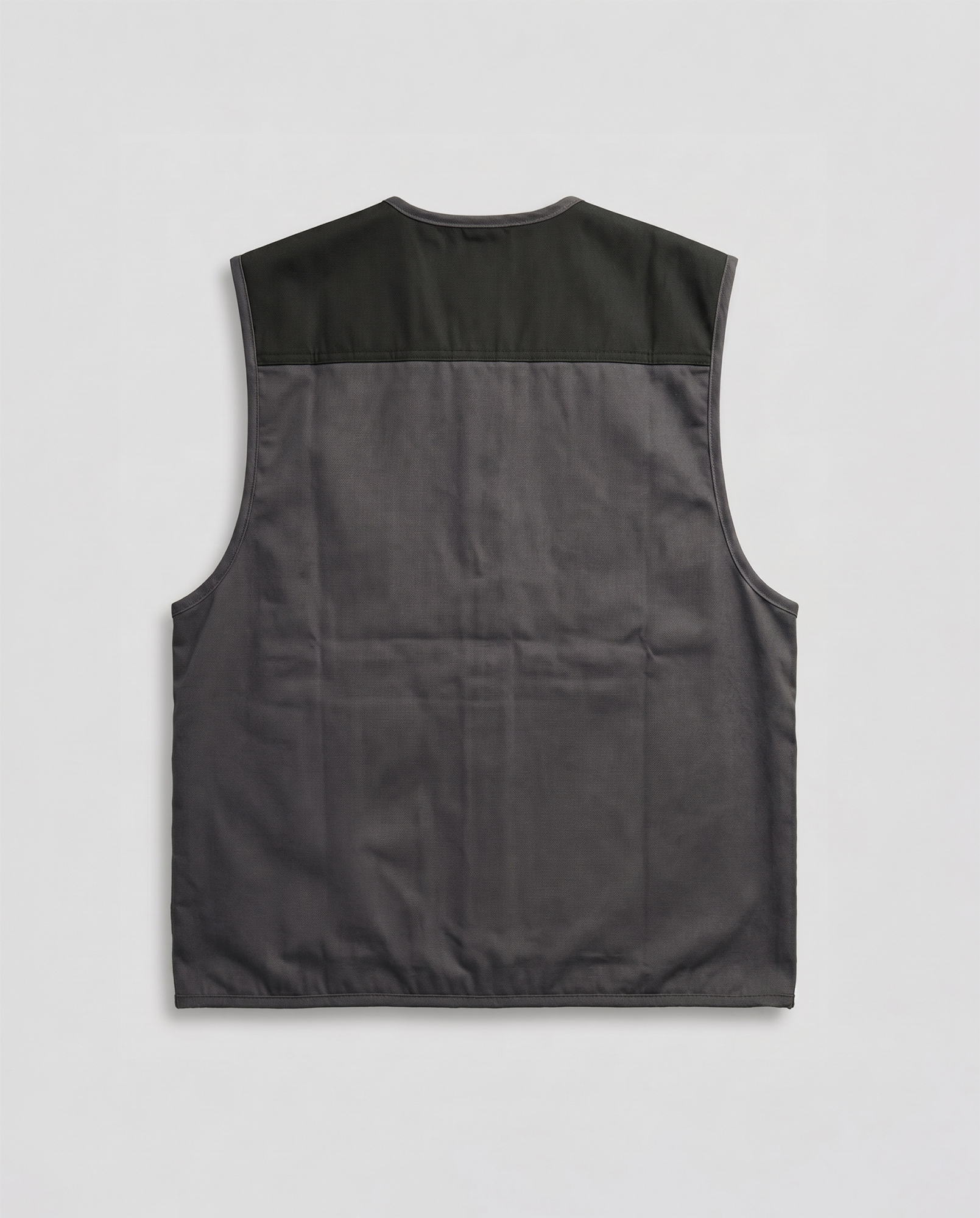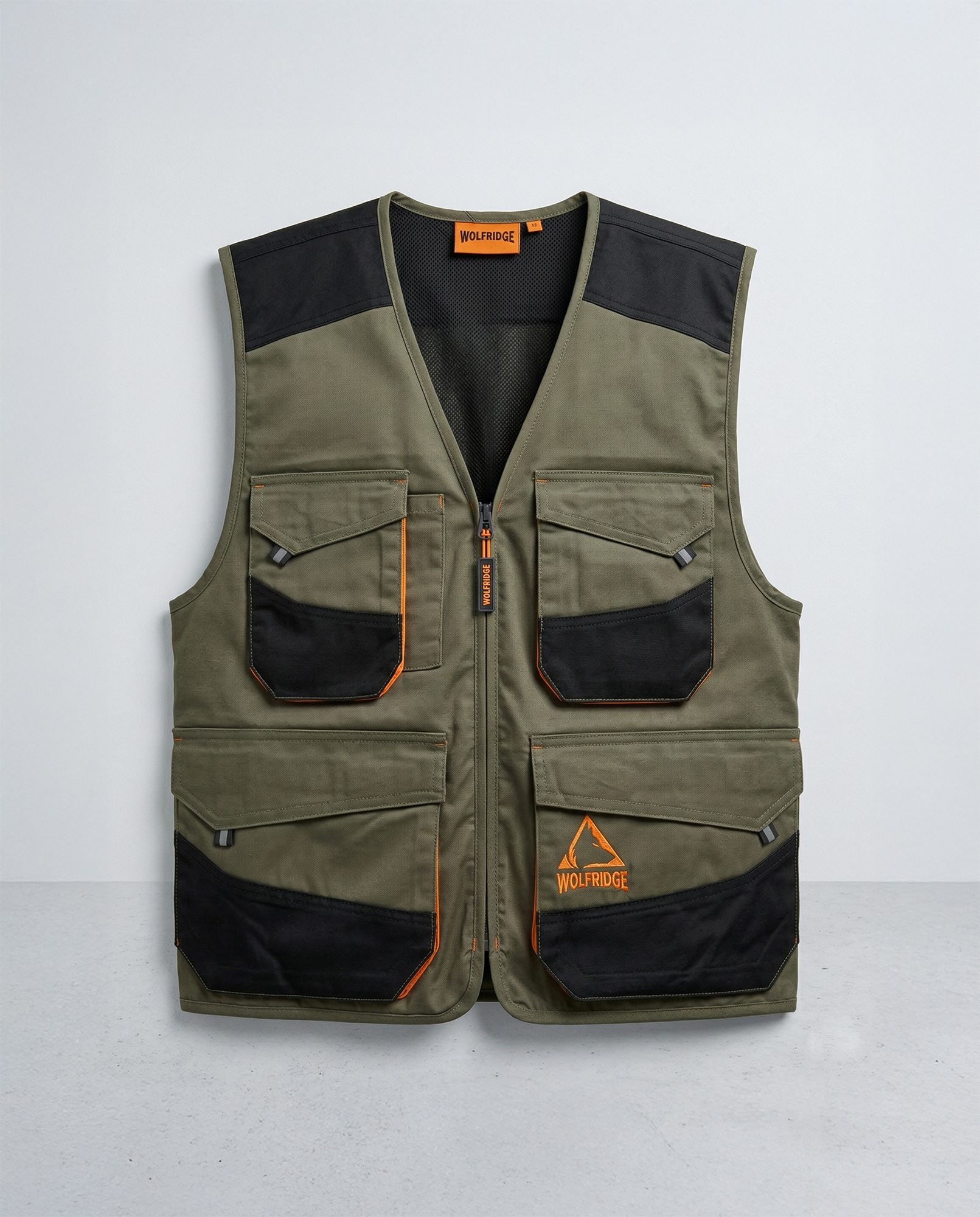 Gilet da lavoro multitasche con contrasti, fit regolare. Quattro tasche frontali multifunzionali – di cui una con porta badge a scomparsa – e rete traspirante interna sulla schiena per una ventilazione ottimale.