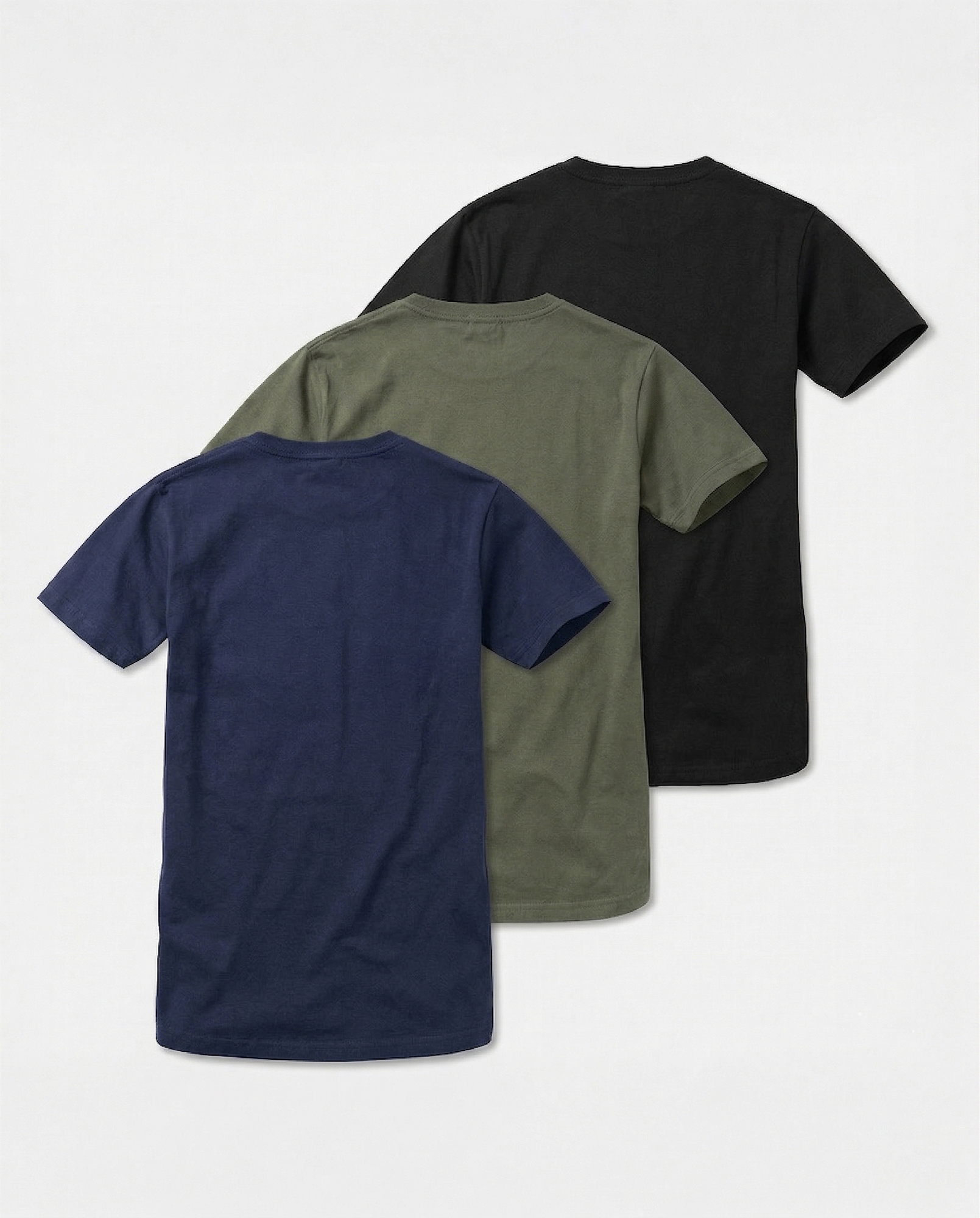 Confezione da 3 t-shirt a manica corta in puro cotone, facili da abbinare a qualsiasi divisa da lavoro o pantalone casual. Dotate di stampa logo e banda parasudore per praticità e comfort durante tutta la giornata.