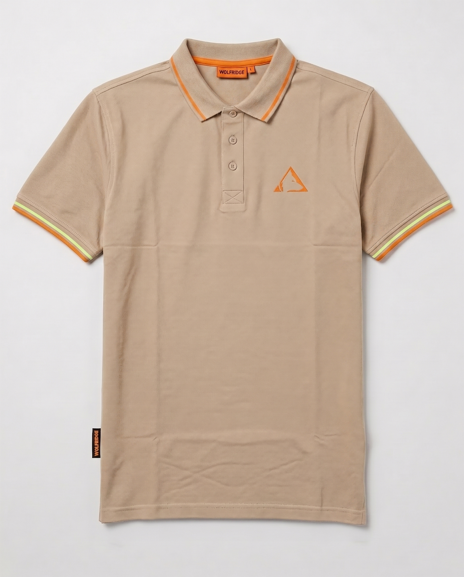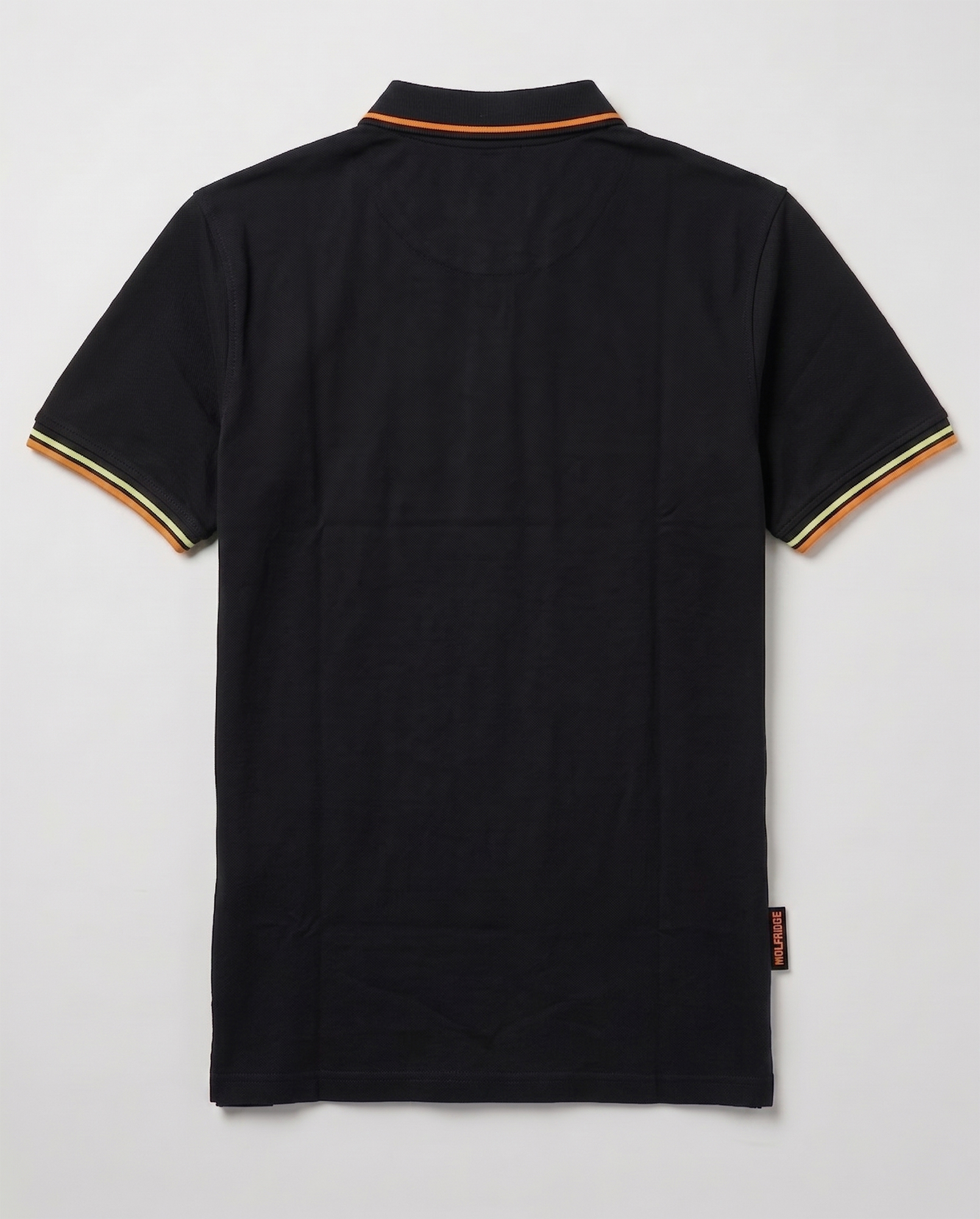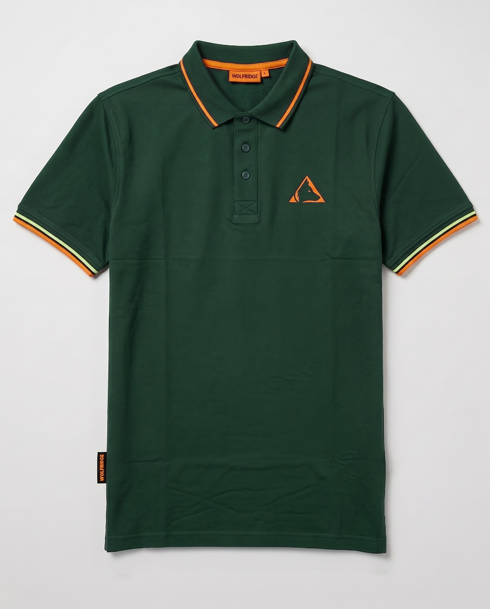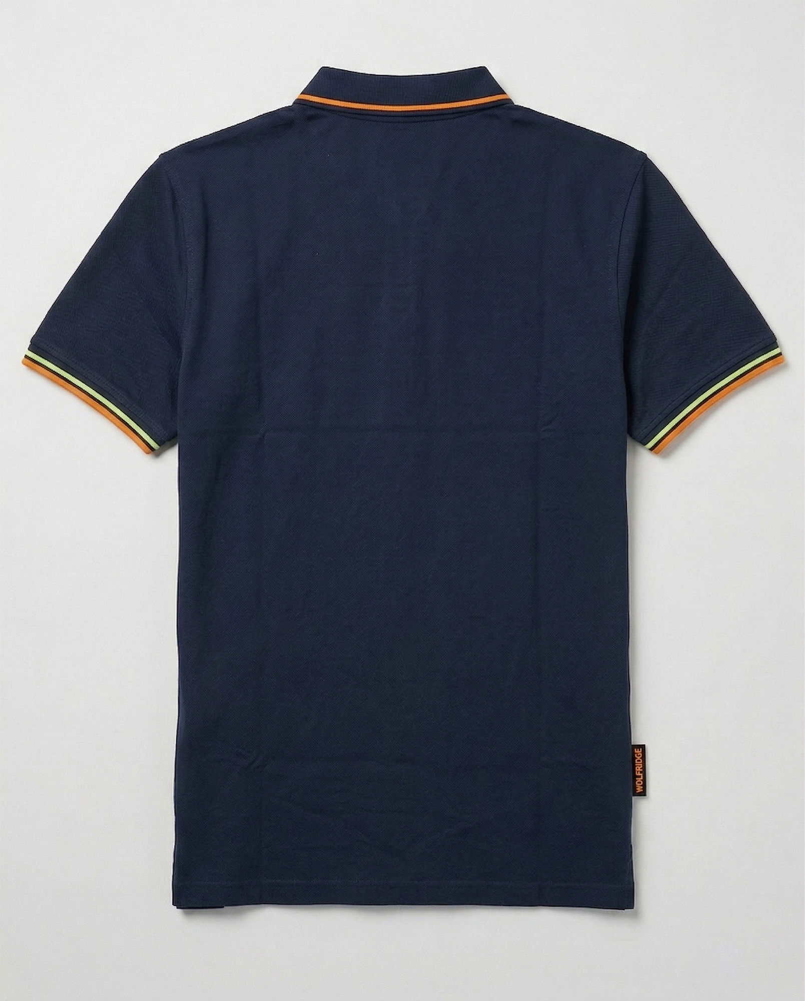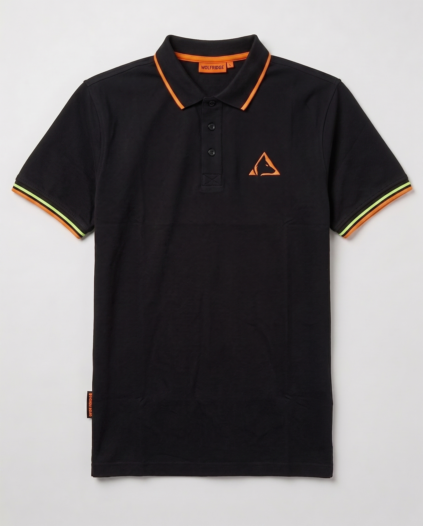 Chiusura a tre bottoni sul collo, spacchetti laterali sull’orlo inferiore con fettuccia interna e flag logo sul fianco.